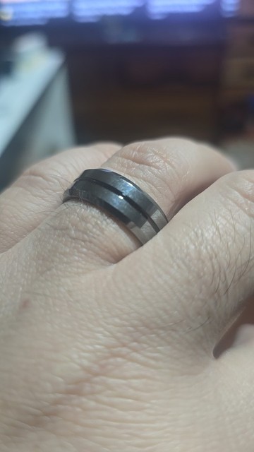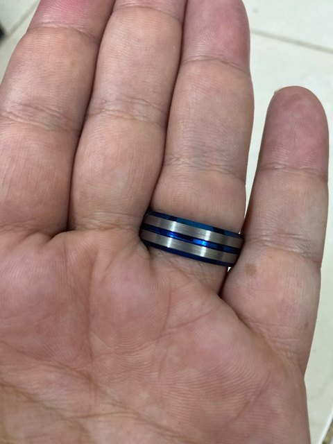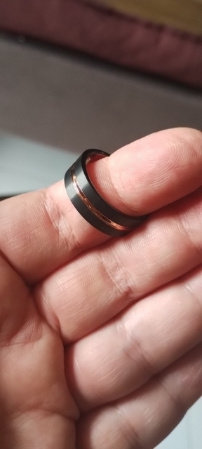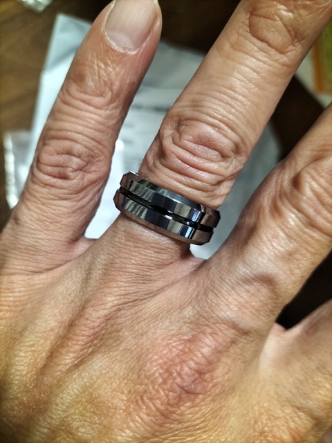 Anillo increíble, compré la talla 8 y me queda perfecto. ¡Es tungsteno auténtico y de gran peso! ¡Altamente recomendado!