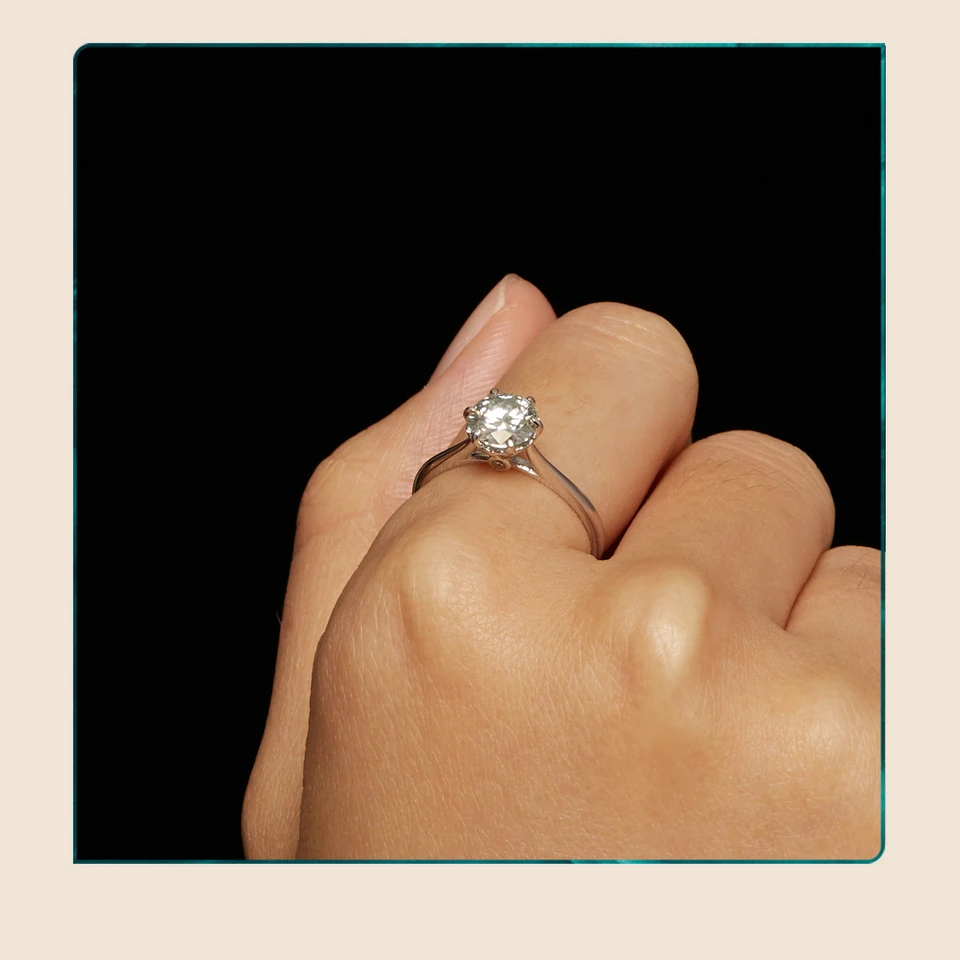 La moissanita no solo iguala al diamante, sino que lo supera en brillo y fuego. Su belleza deslumbrante, durabilidad y origen ético la convierten en la elección perfecta para un anillo de compromiso inolvidable.