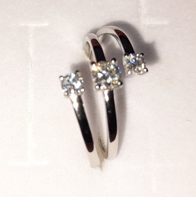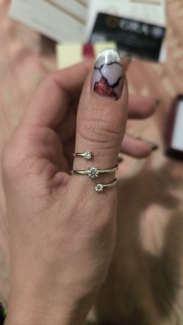 El anillo es precioso, las piedras brillan mucho. Solo se entregó un certificado para la piedra de 0.3 quilates. No hay otros disponibles. El tamaño es ajustable. Se ve bien, pero la falta de certificados es preocupante.