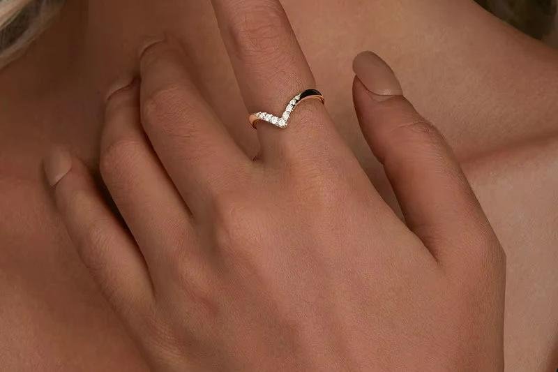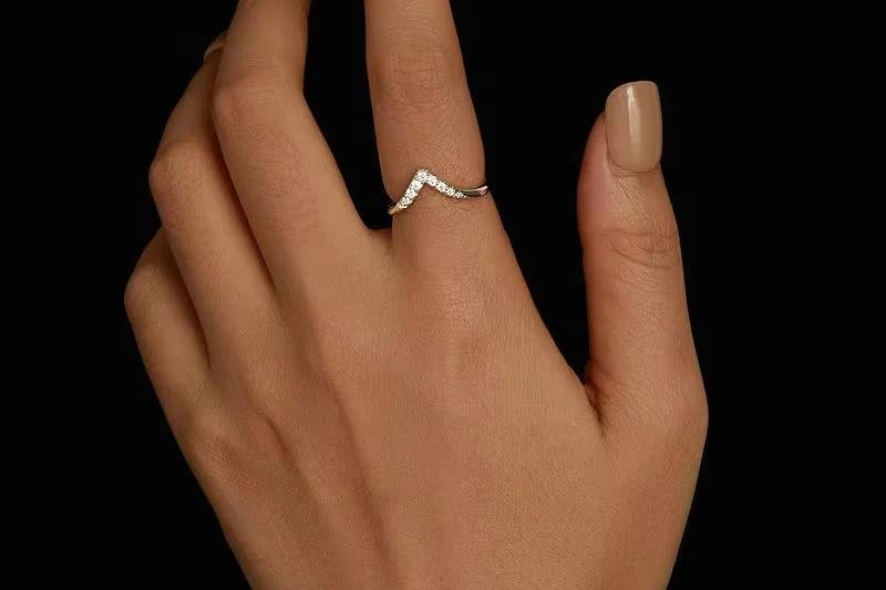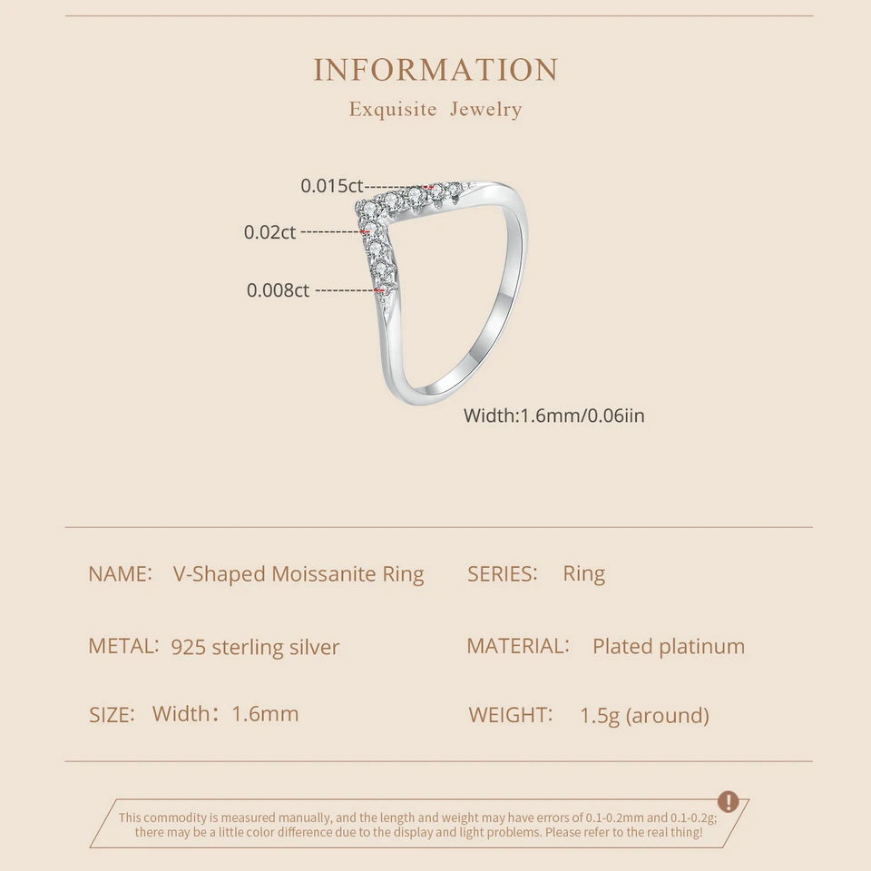 Un anillo delicado y radiante con moissanita en forma de V, elaborado en Plata de Ley 925. Su diseño elegante y minimalista lo convierte en la elección perfecta para compromiso, boda o regalos especiales.