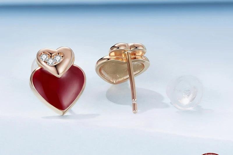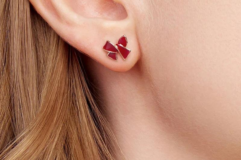 Dulces y encantadores. Estos pendientes Huggie de Plata de Ley 925 destacan por su adorable diseño de doble corazón rojo con un delicado lazo cruzado. Perfectos para añadir un toque de ternura y estilo a cualquier look, tanto para mujeres jóvenes como adolescentes.