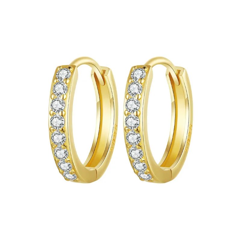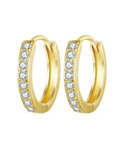 Este exquisito pendiente está confeccionado en plata de ley 925 con un delicado baño de oro, e incrustado con 8 circonitas cúbicas de corte redondo, cuidadosamente pulidas para ofrecer un brillo intenso y refinado.