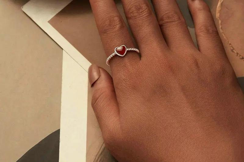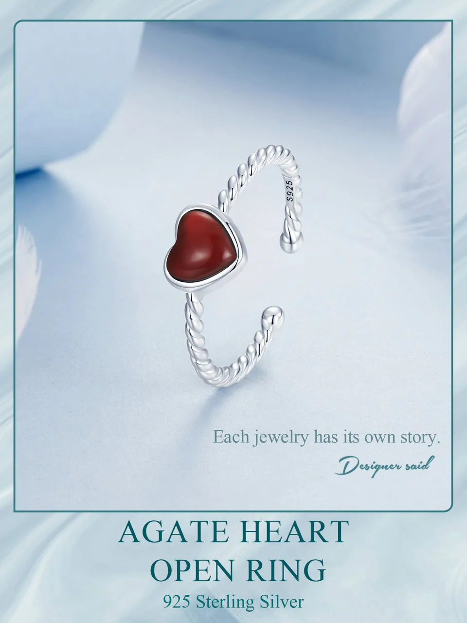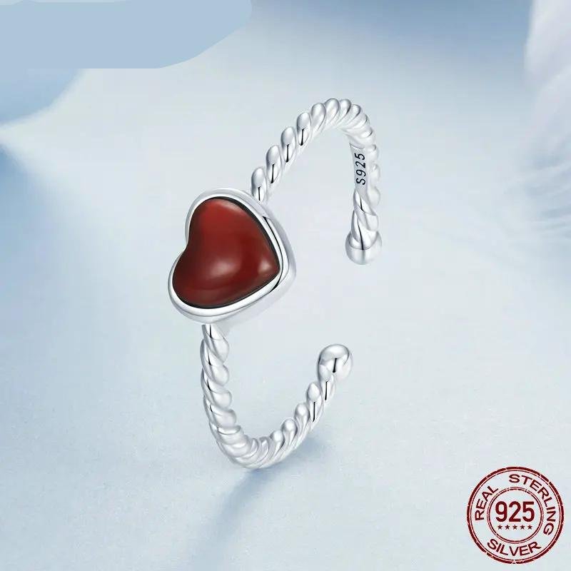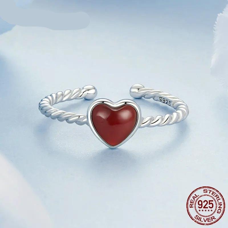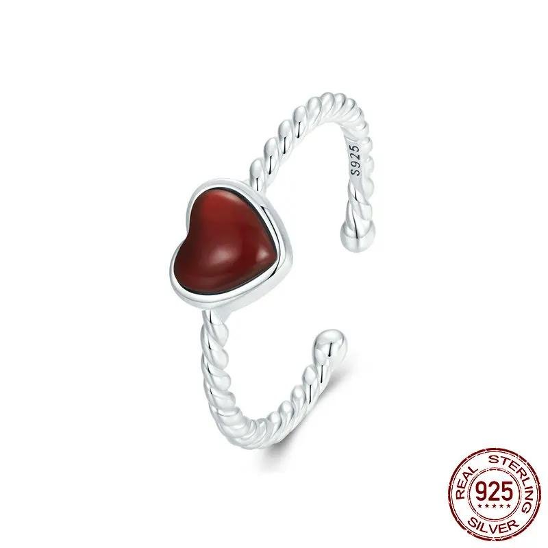 Anillo Corazón Rojo – Plata 925 Ajustable, Amor y Elegancia