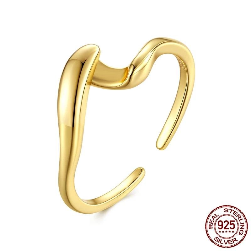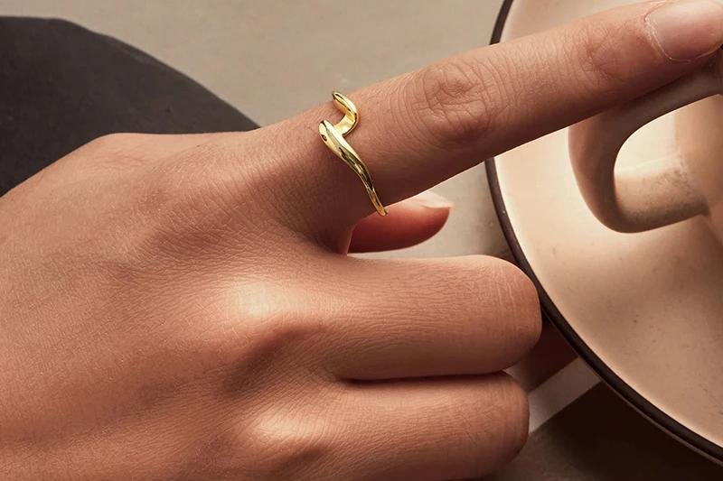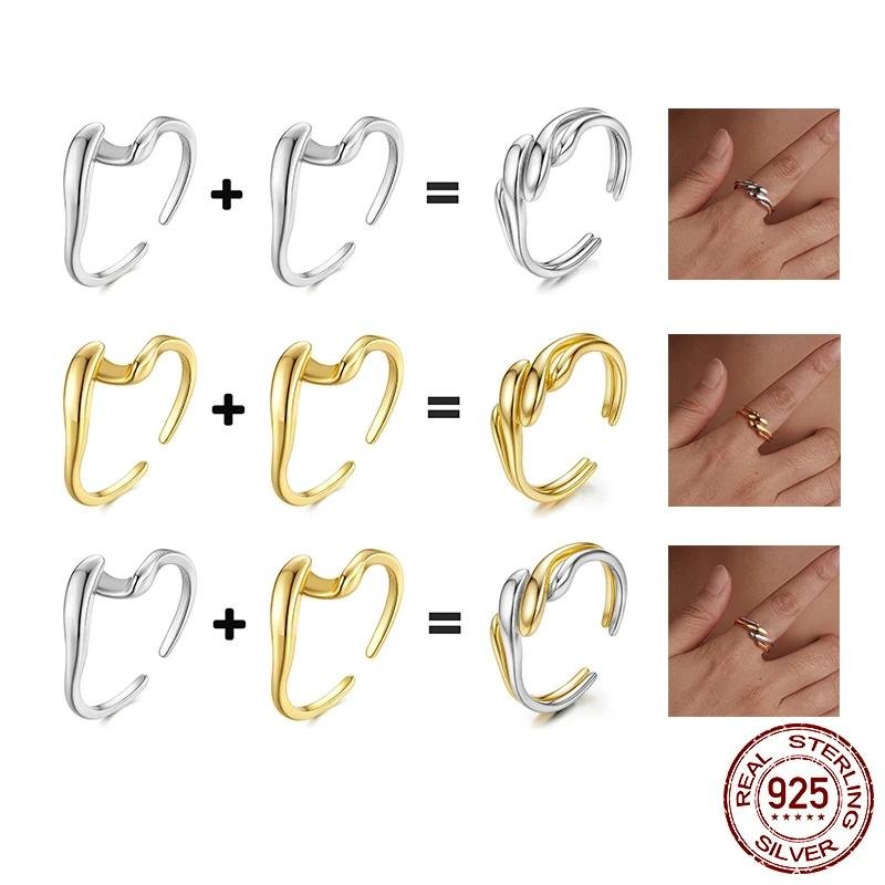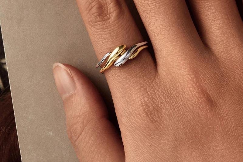 Este delicado anillo combina un elegante diseño ondulado con una banda trenzada chapada en oro, elaborado en auténtica Plata de Ley 925. Su estilo apilable lo convierte en una pieza versátil, ideal para llevar sola o combinar con otros anillos para un look personalizado.