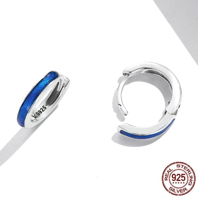 Sencillez que impacta. Estos pendientes de aro en Plata de Ley 925 combinan el diseño clásico con un toque moderno gracias al vibrante azul Klein. Ligeros, elegantes y atemporales, son el accesorio perfecto para fiestas, eventos o uso diario.