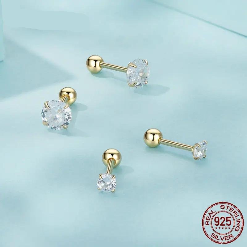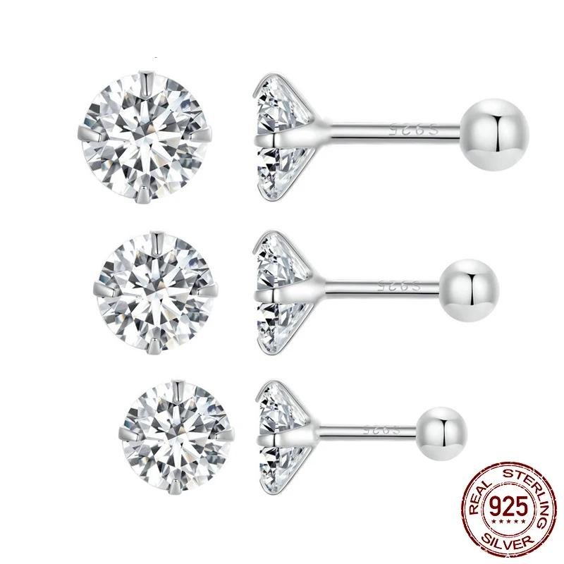 Aretes clásicos y elegantes, elaborados en plata de ley 925 chapada en platino con poste hipoalergénico y seguro. Incrustados con circonitas cúbicas redondas genuinas que brindan un brillo radiante ideal para cualquier ocasión.