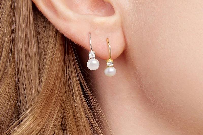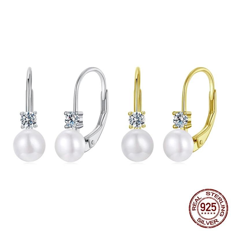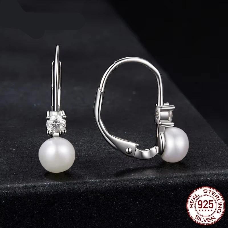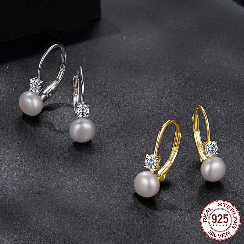 Estos elegantes pendientes de perlas de agua dulce combinan el brillo de la Moissanita y diamantes de laboratorio de corte redondo, montados en Plata de Ley 925 chapada en platino. Su diseño hipoalergénico los hace cómodos y seguros, ideales para uso diario o ocasiones especiales.