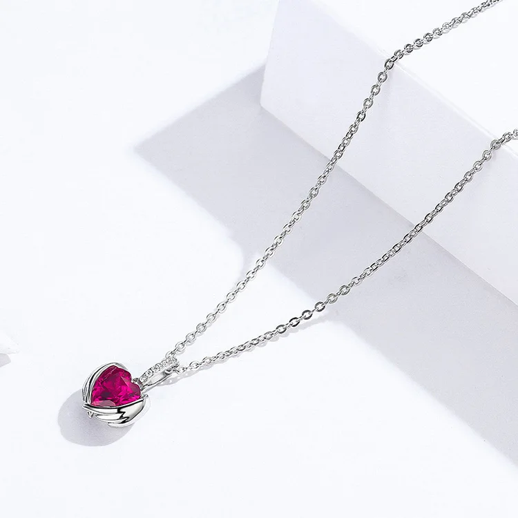 Este encantador collar combina un brillante corazón rojo de circonita cúbica AAA con delicadas alas de guardián en plata de ley 925. Un diseño cargado de significado que representa el amor eterno y la protección espiritual. Ideal para expresar tus sentimientos con elegancia.