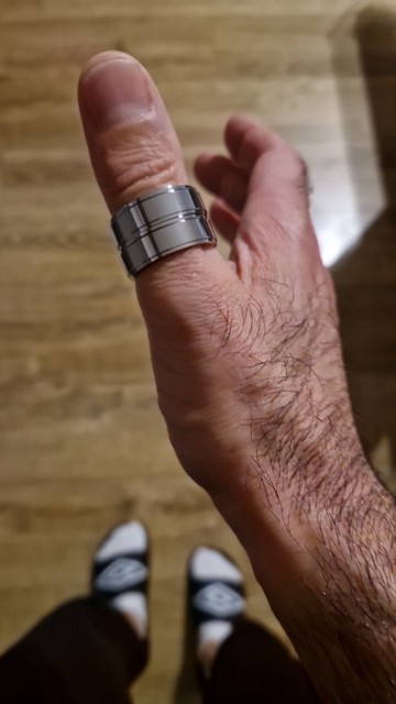 Una pieza muy bonita con una excelente relación calidad-precio. El acero es brillante, compré dos para apilar en mi pulgar derecho. La talla 12 en este modelo es perfecta. ¡La recomiendo!
