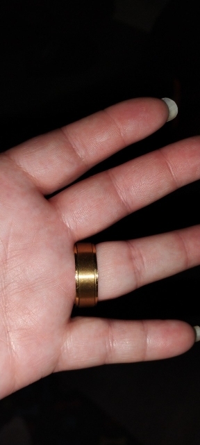 El anillo es lo suficientemente bonito. El spinner realmente funciona, es bastante suave y gira con fluidez. El peso y el mango del anillo son muy ligeros. Los bordes internos no están tan redondeados como normalmente prefiero. El anillo no es incómodo, pero tampoco lo clasificaría como diseñado para brindar comodidad. Por el precio, está bien, pero uno solo será suficiente para mí.