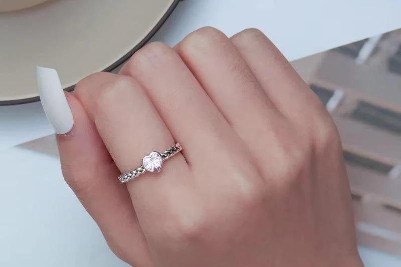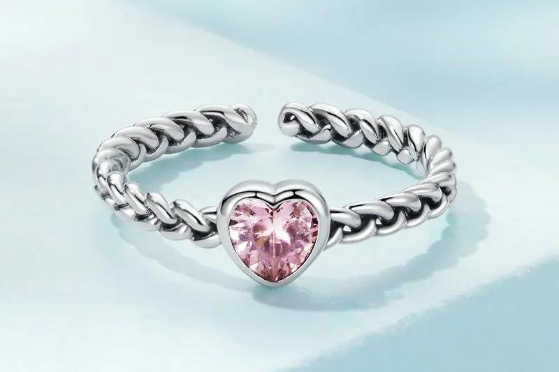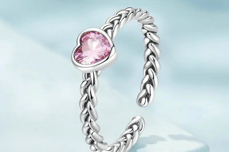 Anillo «Amour Braided» de Plata 925 con Cristal de Corazón | Dalesha