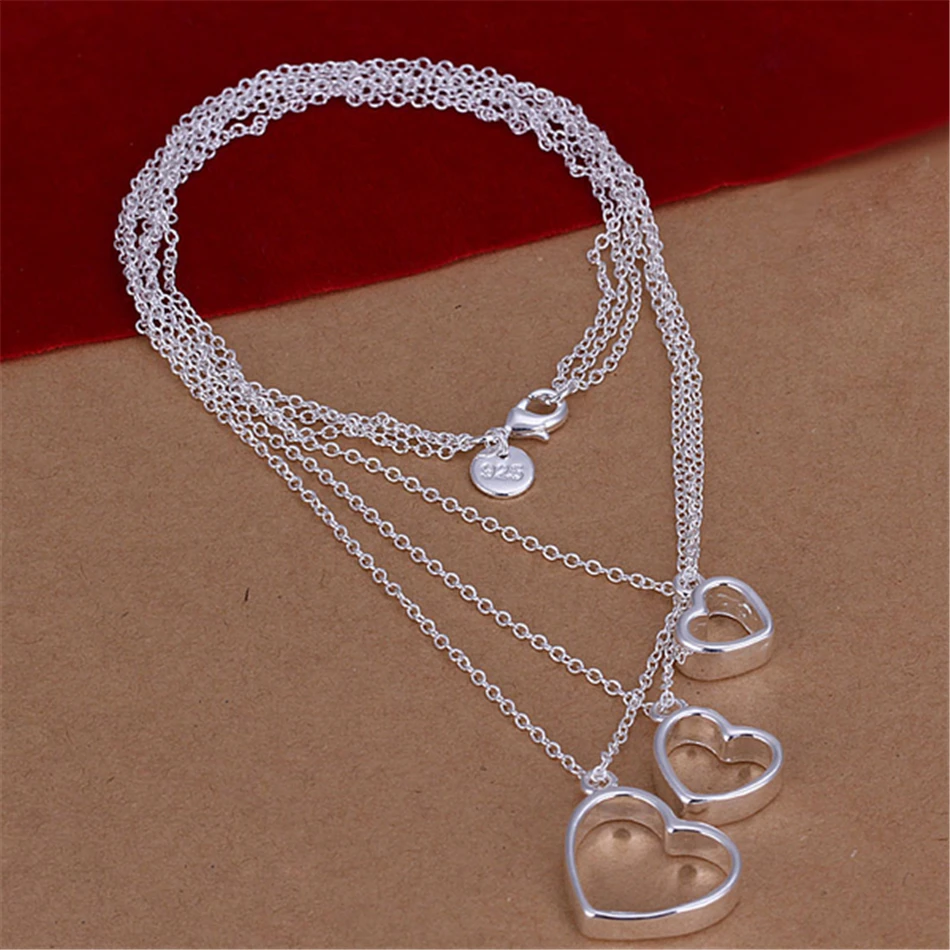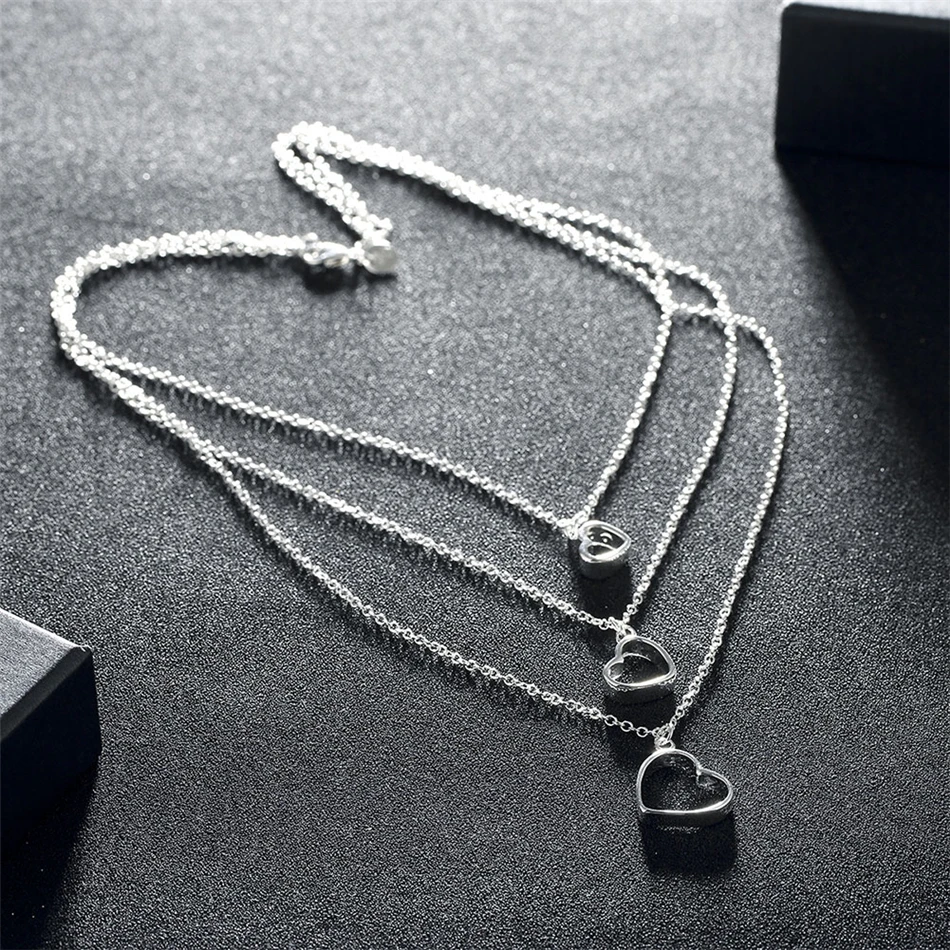 Expresa amor y elegancia con este collar de triple corazón elaborado en plata de ley 925 auténtica.