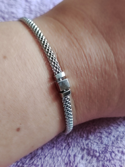 Una pulsera muy bonita, cierre seguro, tejido hermoso, suave, no se engancha en la ropa, la talla coincide. Embalaje bueno y confiable, se incluye un paño de limpieza, vendedor confiable.
